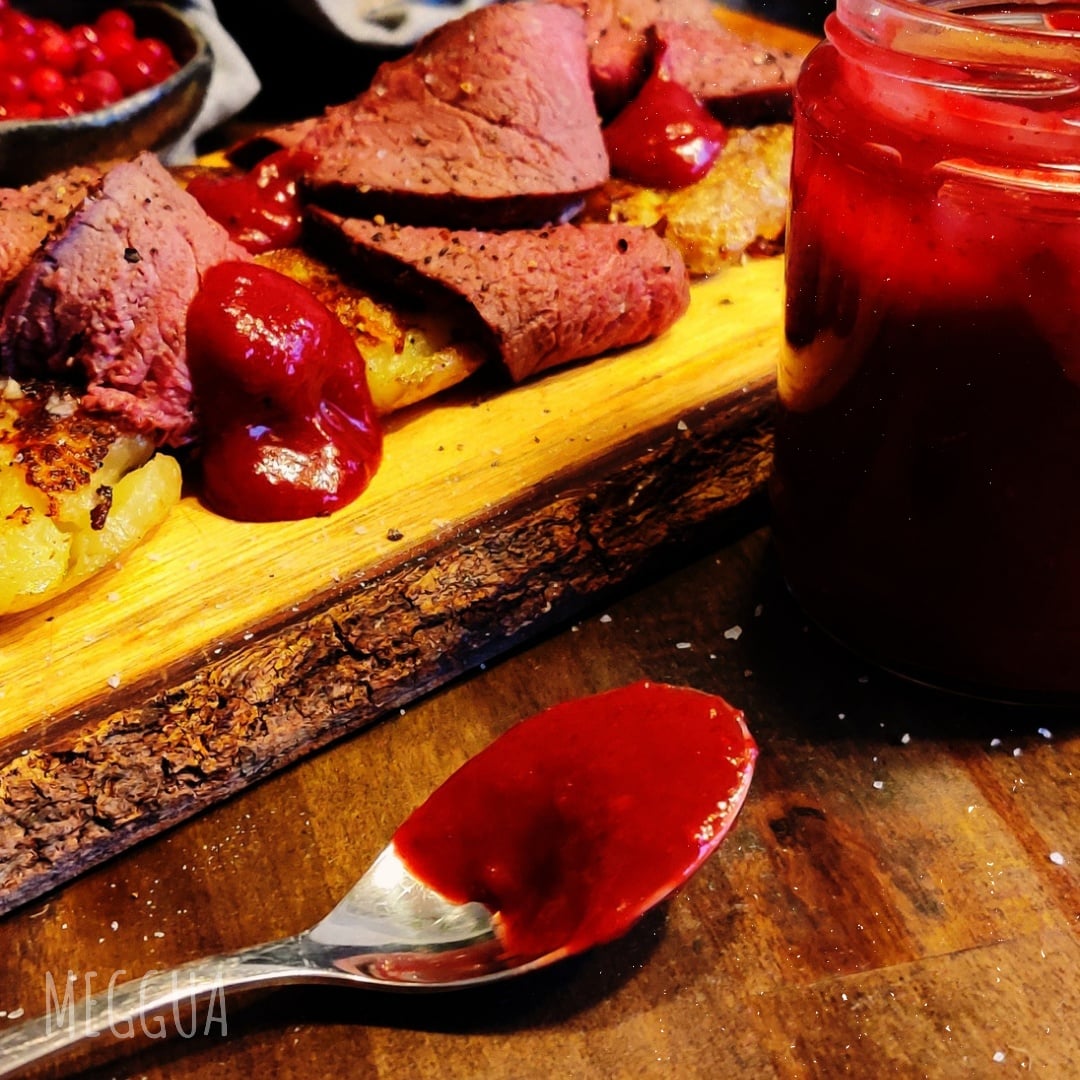 Ketsuppi tarkoittaa tomaateista valmistettua hapanimelää maustekastiketta, mutta entä jos se onkin tehty puolukoista? Puolukasta tulee ihanan makoisa punainen ketsuppi, joka sopii niin lihapullille, hampurilaisiin kuin poronpaistin kylkeen perunalohkoille.